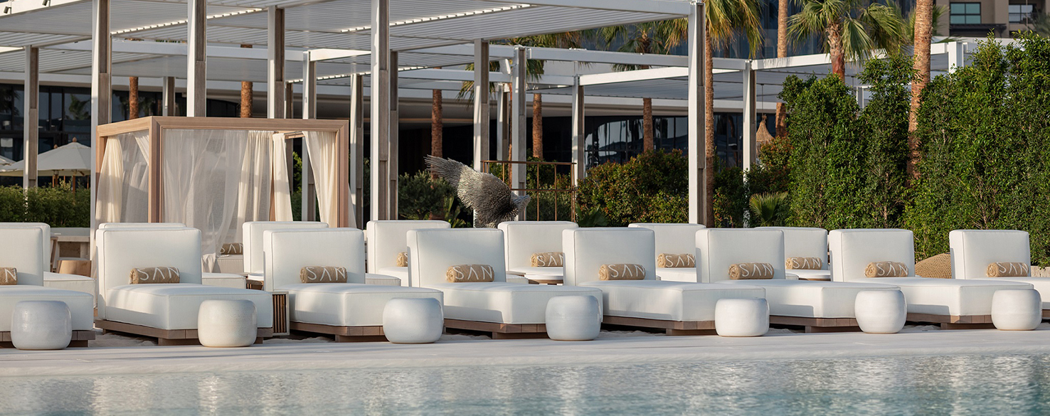 Set to open 14 April, SĀN Beach draws inspiration from the San, the indigenous people of Africa who live in harmony with nature. Featuring a Mediterranean-inspired menu, patrons can enjoy the restaurant, book private sofas and floating sunbeds or opt for the luxurious cabanas.