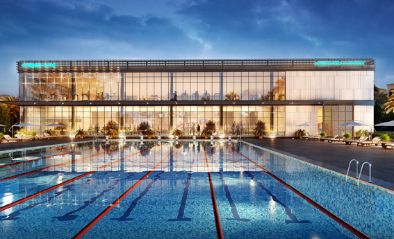 An upcoming health, fitness and wellbeing complex that features a 50m Olympic-size swimming pool, a 16,000 square foot gym and a spa.
